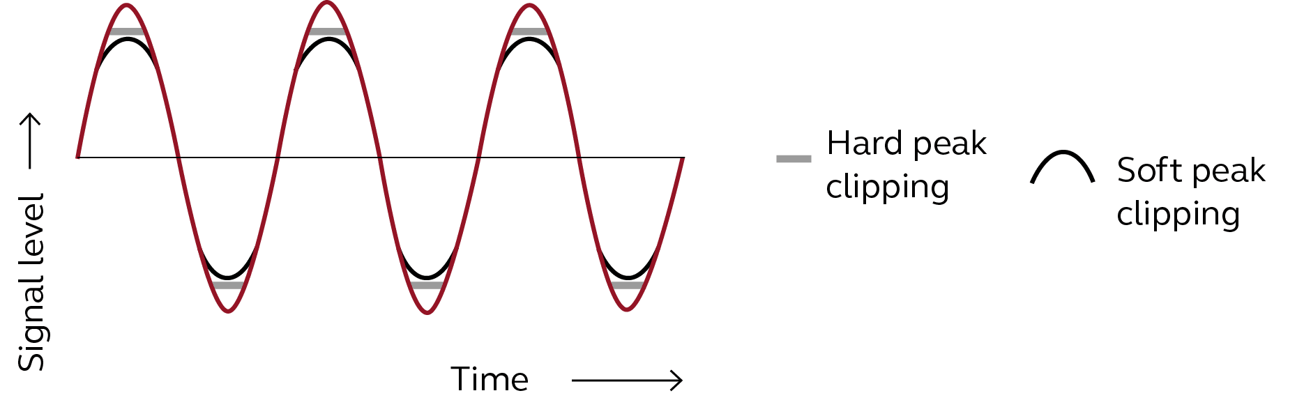 Provides a compression ratio of 1:1, setting the gains for soft and loud inputs to the same targets as for moderate level. In this mode, Soft Peak Clipping and Hard Peak Clipping are options for limiting the output of the hearing aid. Despite that both options create more distortion in the output of the hearing aid (Hard Peak Clipping creates the most) it is sometimes preferred by those with severe and profound hearing losses.